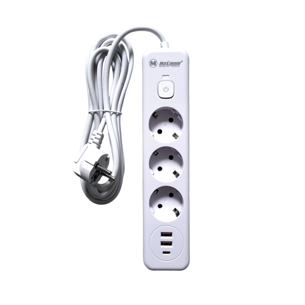 Удлинитель сетевой белый с безпроводной зарядкой 3 метра, 3 евро розетки, 4 USB порта, Type C, 2500W