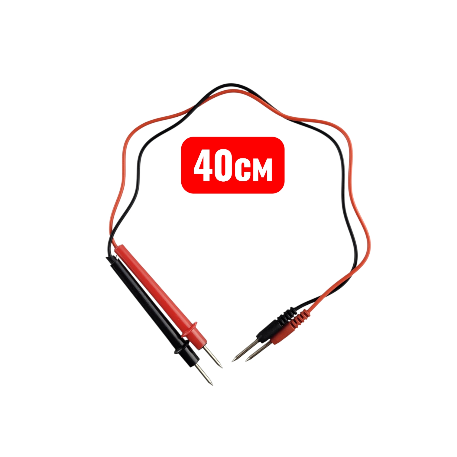 Поставляется в комплекте с тестовыми проводами 40 см., батареей и инструкцией по эксплуатации.